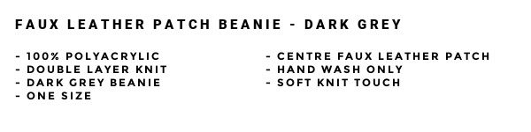 Leather Patch Beanie - Dark Grey
